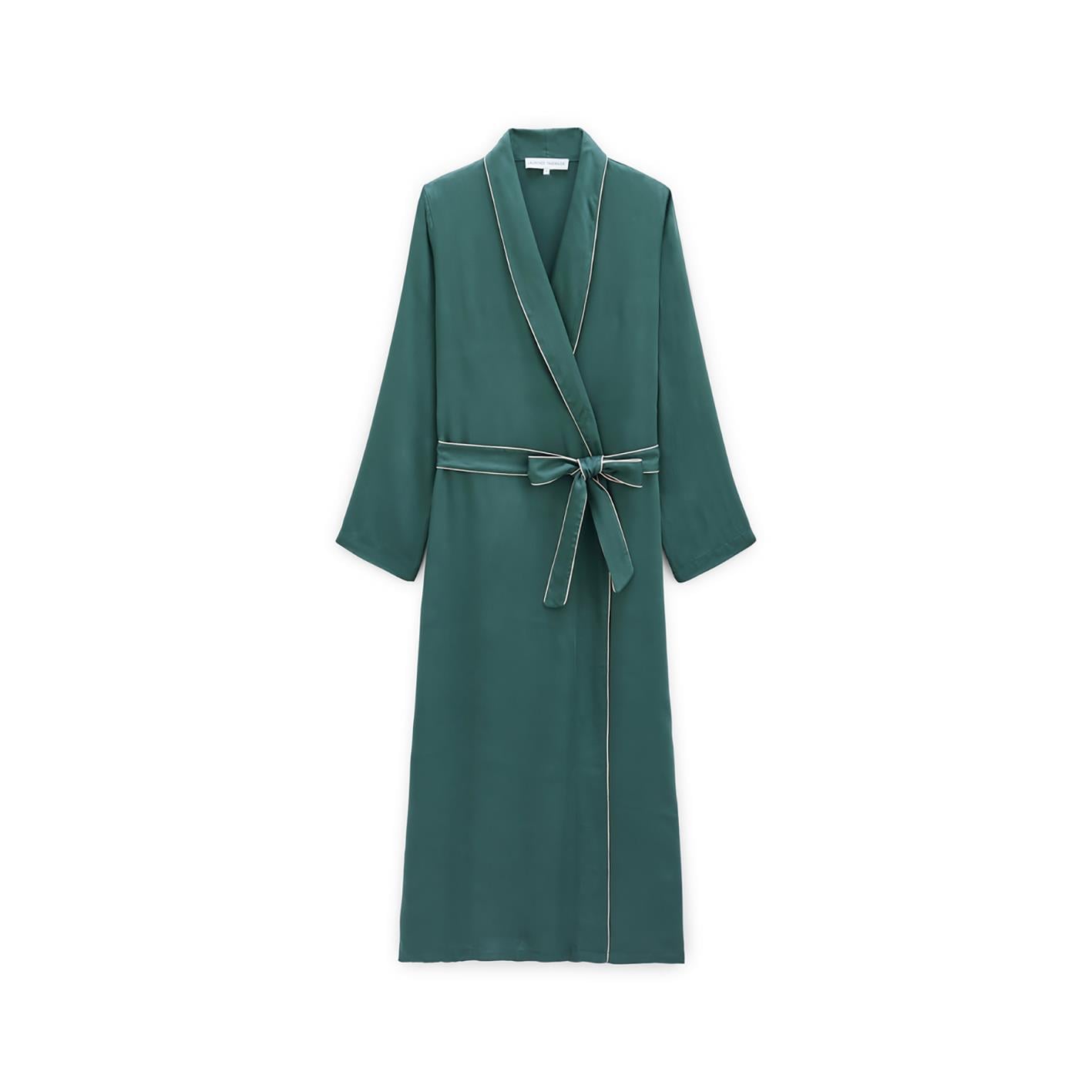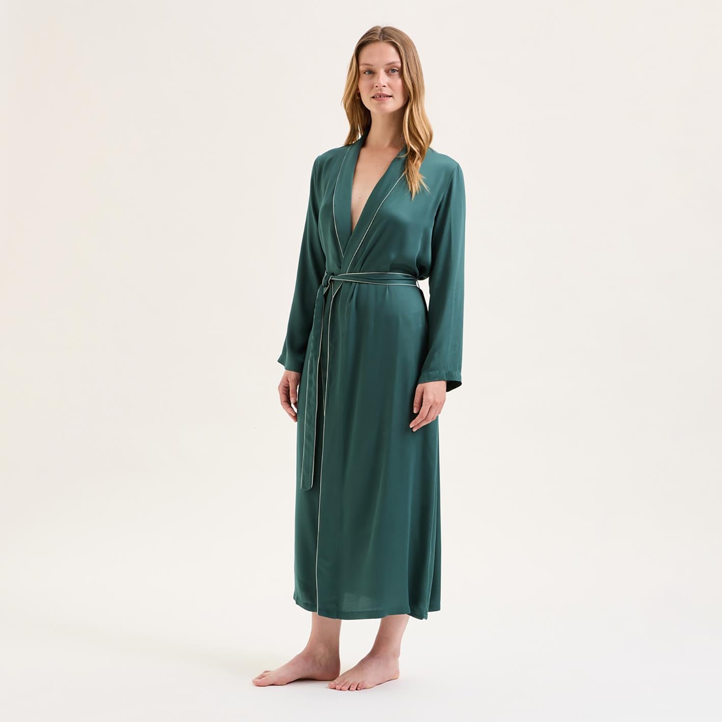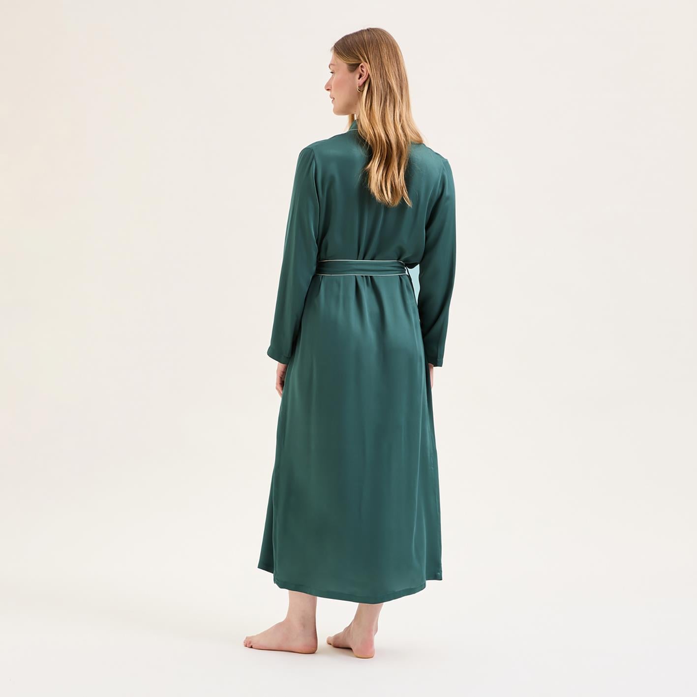 Viskon saten.Zıt krem rengi biye kenar bitişi.Kemer boyunca biye detayları.
