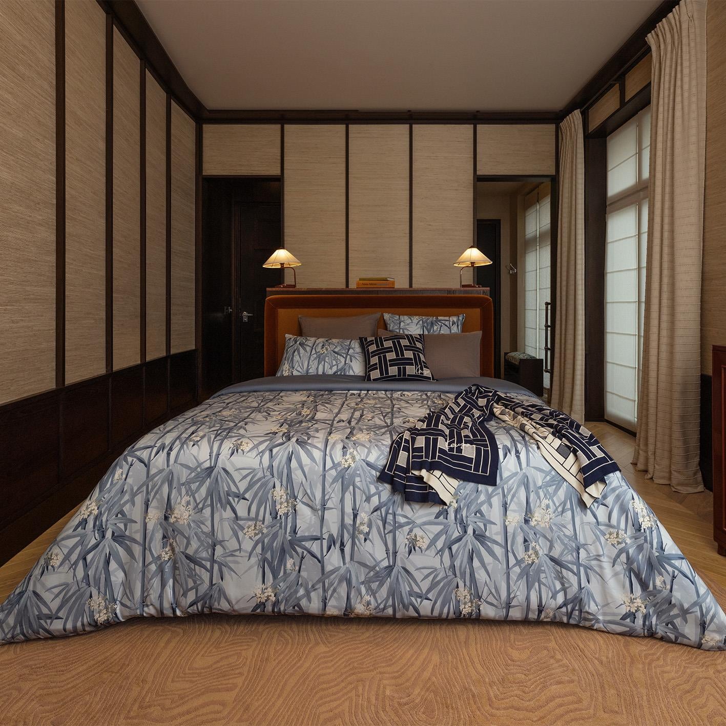 Bambu, Kenzo evreninde önemli bir referans noktası olarak, Kenzo İlkbahar/Yaz 2025 moda şovunda Nigo tarafından öne çıkarılıyor. Kamuflaj benzeri bir kompozisyonla oluşturulan bu tasarım, markanın vazgeçilmezi haline gelen Kenzo’nun Japon kotunu andıran mavi tonlarında işlenmiştir. Takımın ters yüzünde ise, bir gömlek çizgisi bu yemyeşil ormanın zenginliğini dengelemektedir.