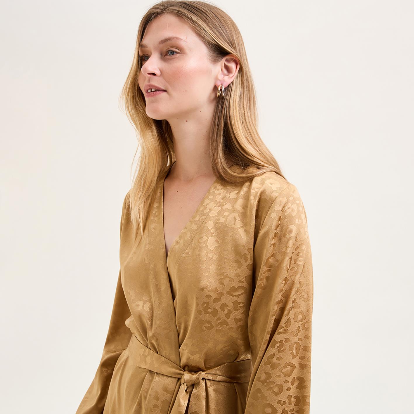 İpek jakarlı uzun kimono.16 momme ipekten üretilmiştir.Bel kısmı kemerlidir. Uzunluk:130 cm