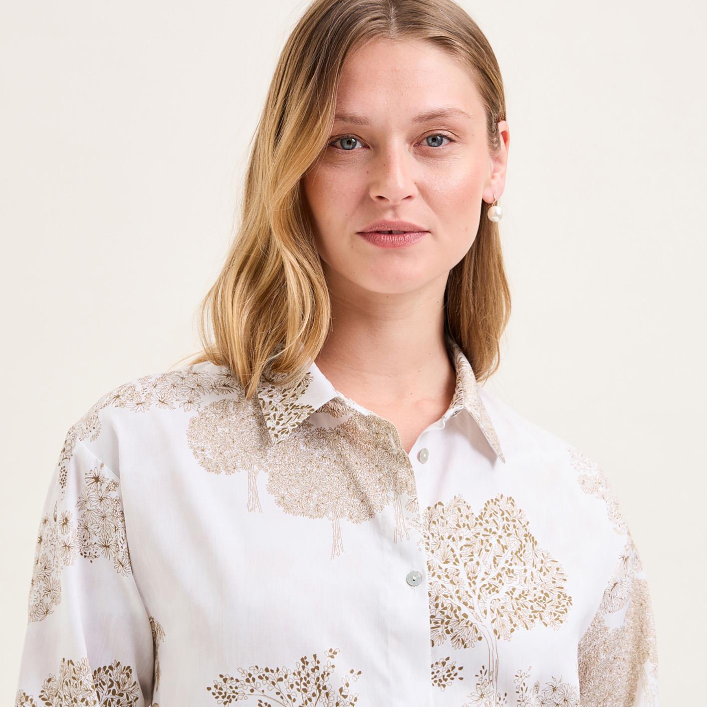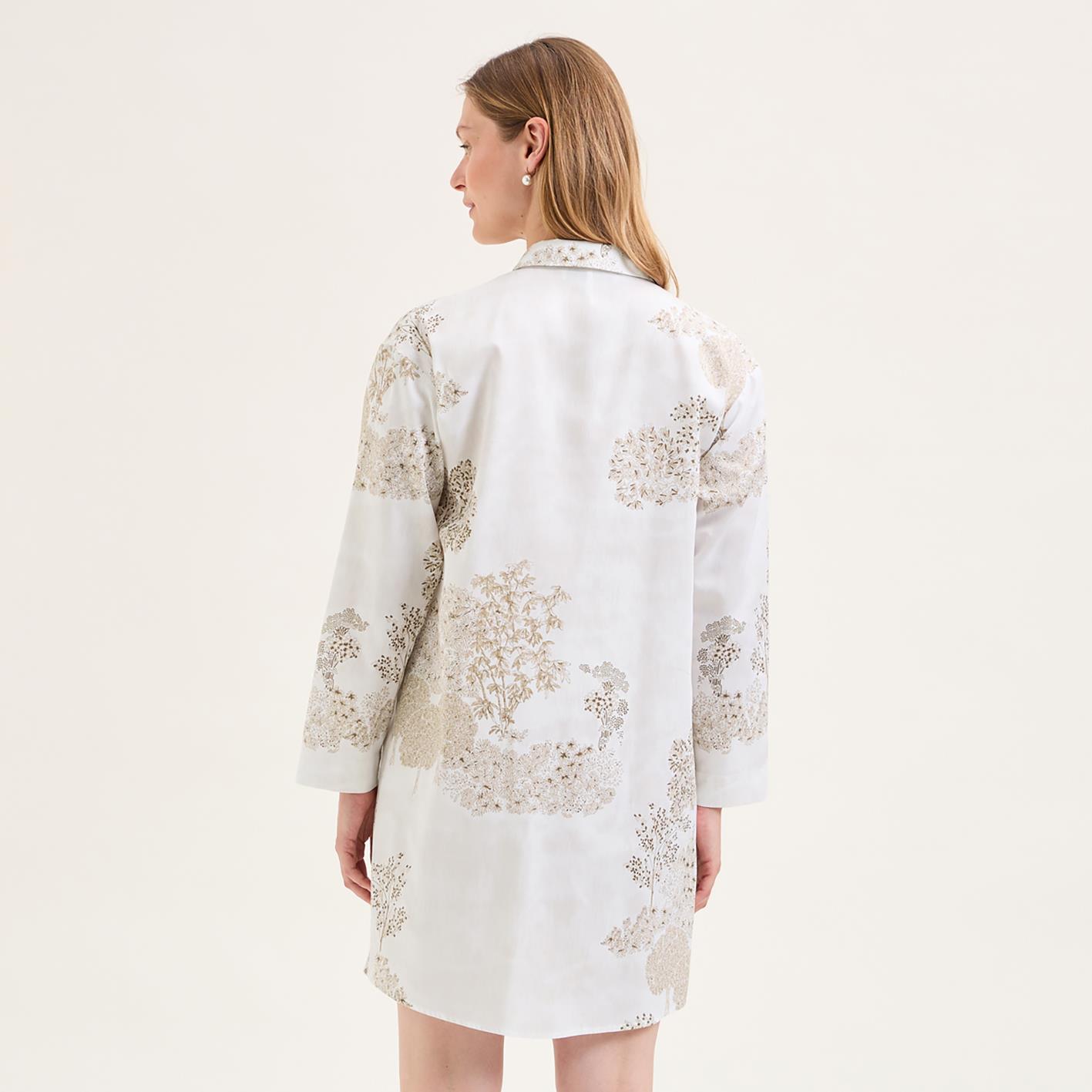 Yves Delorme koleksiyonundan ilham alan manzara desenli baskı.Sedef düğmeler, inci parlaklığında gümüş yansımalarla.