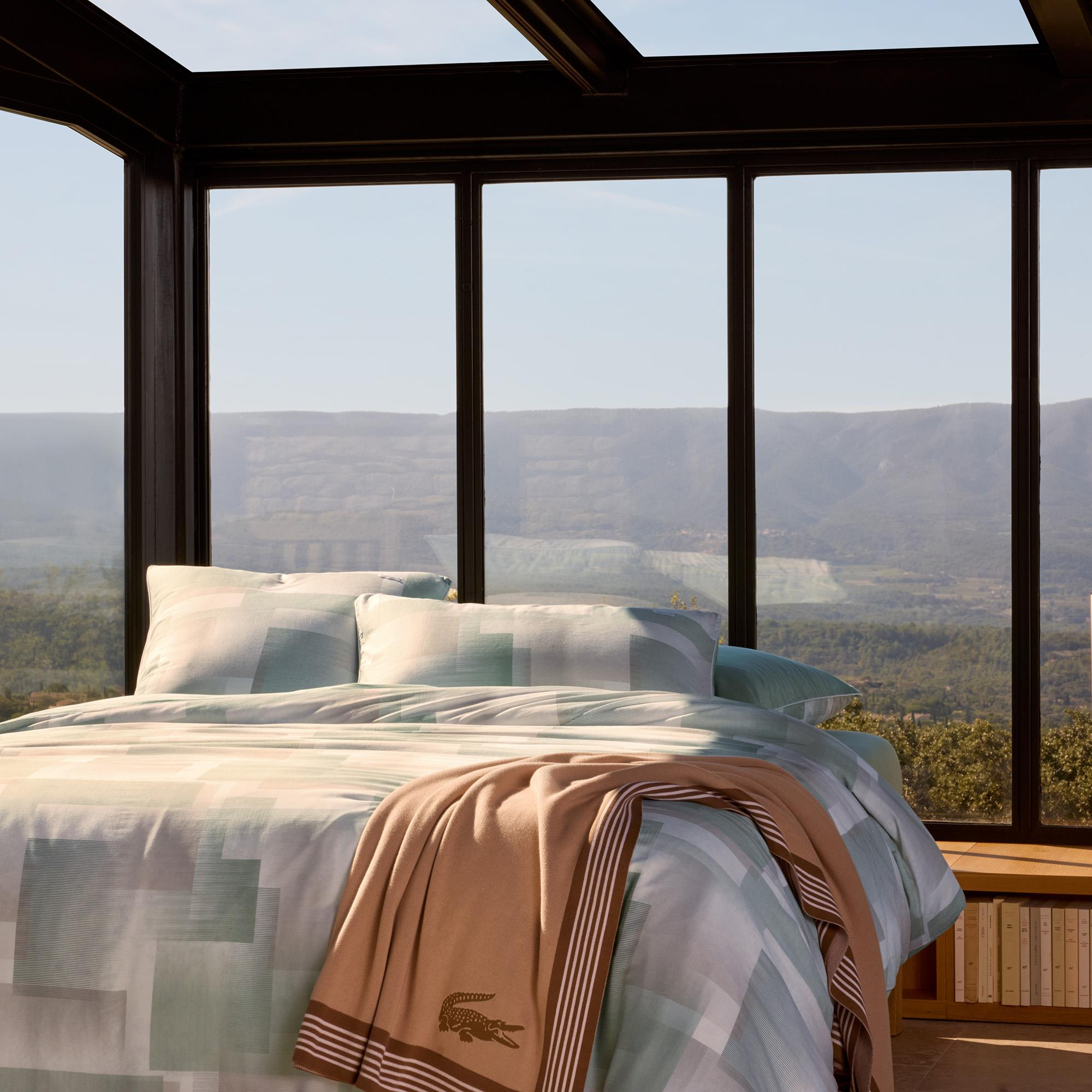 Düğmeli kapanışlı ve üzerinde beyaz timsah logosu (45 mm) bulunan nevresim.